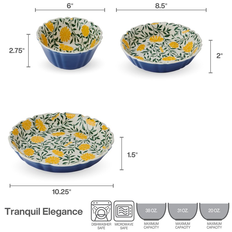 - BOLD AND BRIGHT: enliven your place settings with the yellow floral interior and solid blur exterior of Tranquil Elegance dinnerware