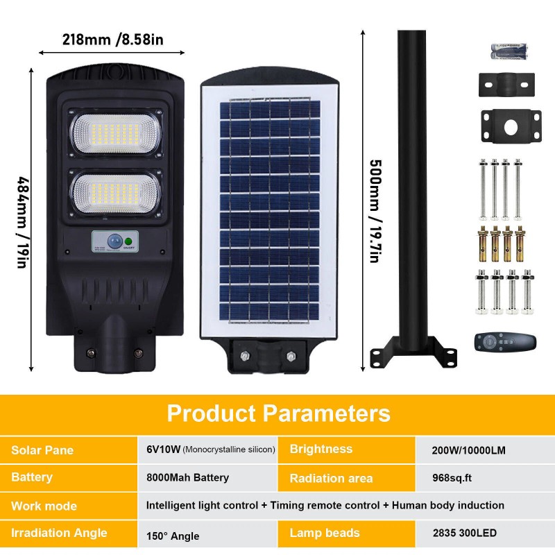 【WATERPROOF IP65】The Outdoor street light is ABS plastic anti-UV lamp body and new housing inner design with individual sealed boxes for batteries, controller and outer sealed rubber ring protect from water leaking. IP67 waterproof makes it able to withstand a variety of outdoor environments and weather conditions.