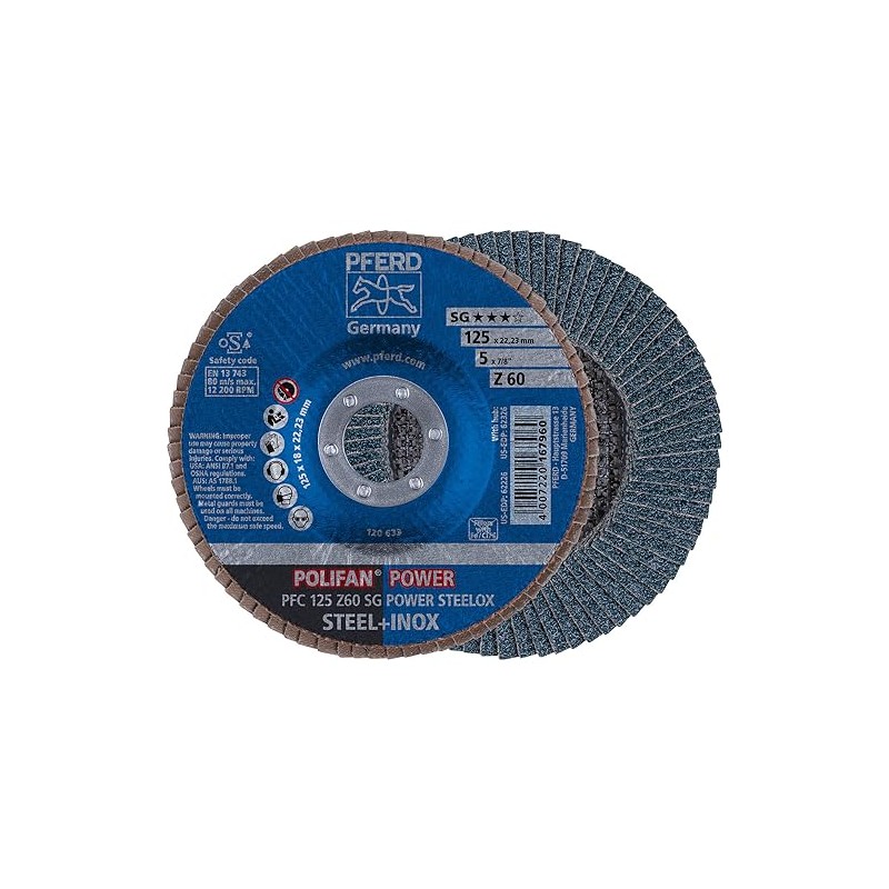 PFERD 62226 5" x 7/8" POLIFAN Flap Disc - Conical SG, Zirconia, 60 Grit (10pk)