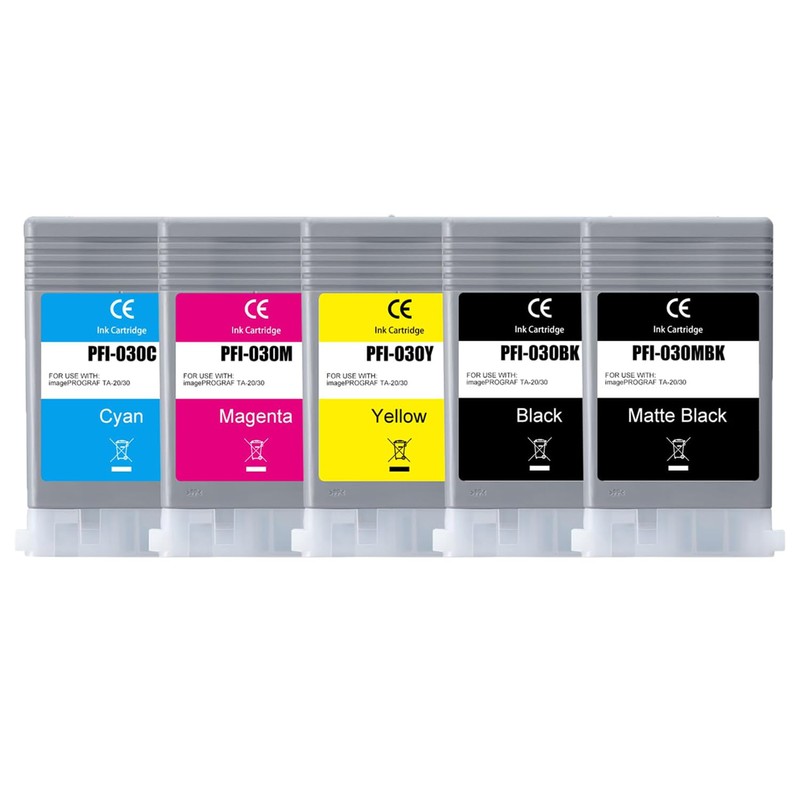 - 1、Pfi-030 ink cartridge set package:5 PCS PFI-030 Ink Tank Set(5-Pack, 1Matte Black, 1Black, 1Cyan, 1Magenta, 1Yellow)