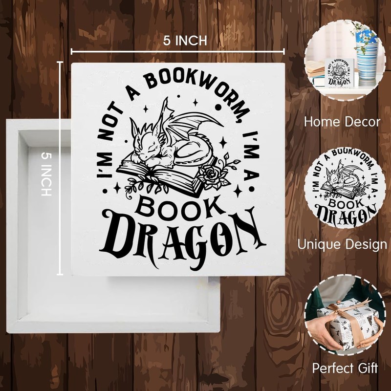 Pfkfo Rustic Dragon2 Wooden Book Dragon Sign, 5x5x1.2 inches, Decorative Sign, Storage Box