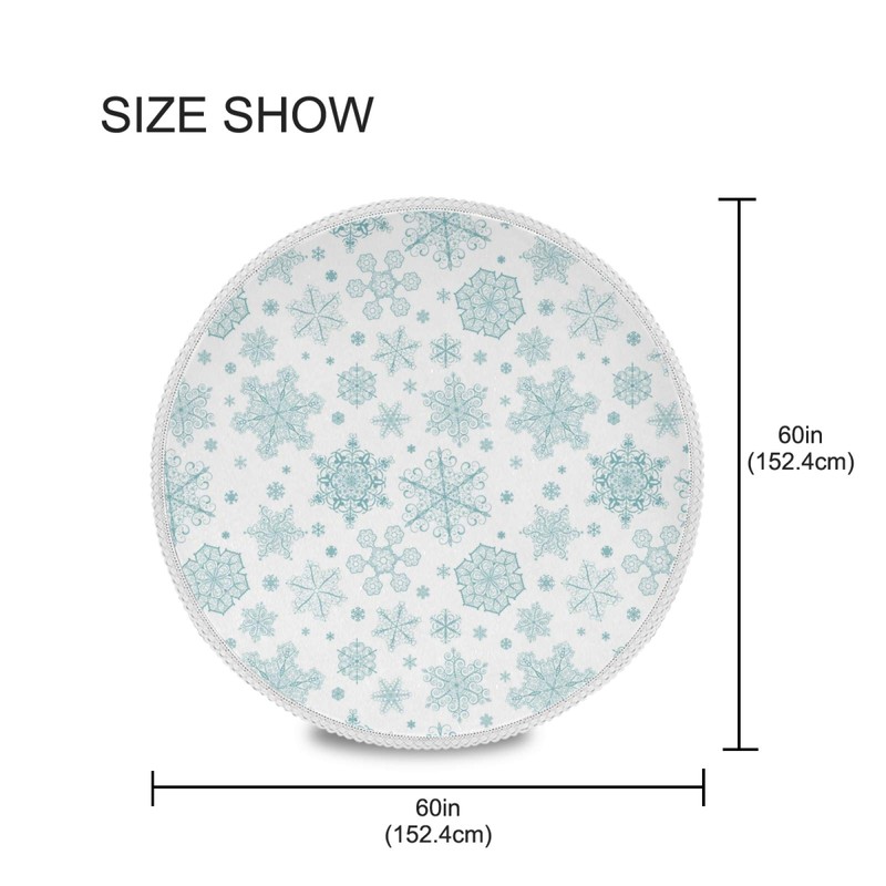 Pfrewn Christmas Turquoise Snowflakes Round Tablecloth Winter Snowman Table Cloth Cover Mat Lace Washable Polyester 60" Dining Decorative for Holiday Home Party Wedding Picnic
