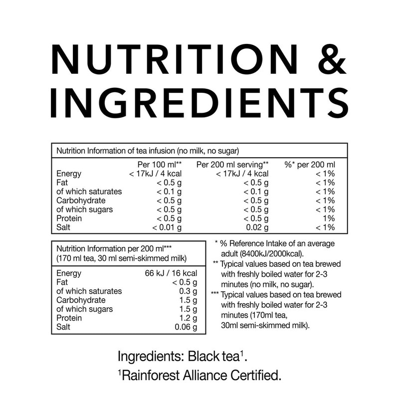 - Complemented with a new shaped biodegrable* plant-based tea bag, delivering a perfect flavour release