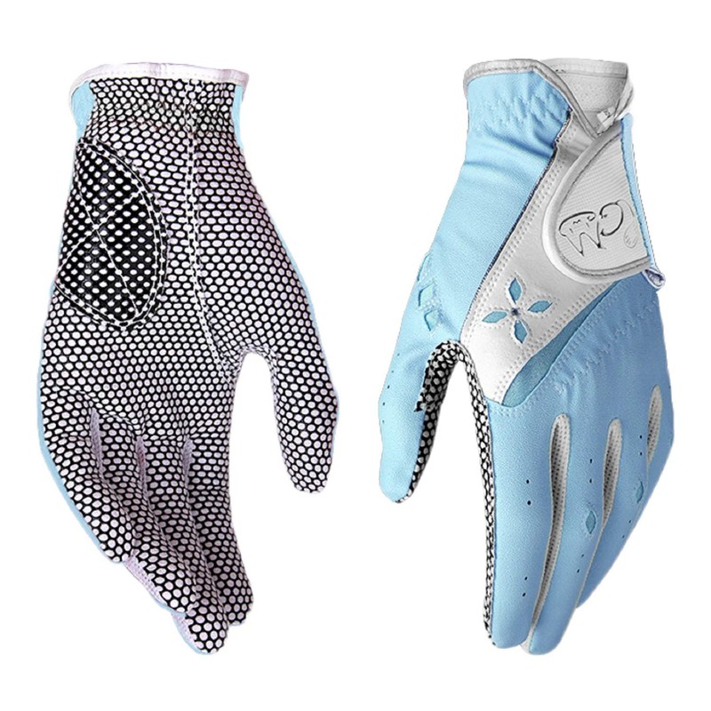 PGM Women's Golf Glove One Pair, Improved Grip System, Cool and Comfortable (Blue, 18, S)