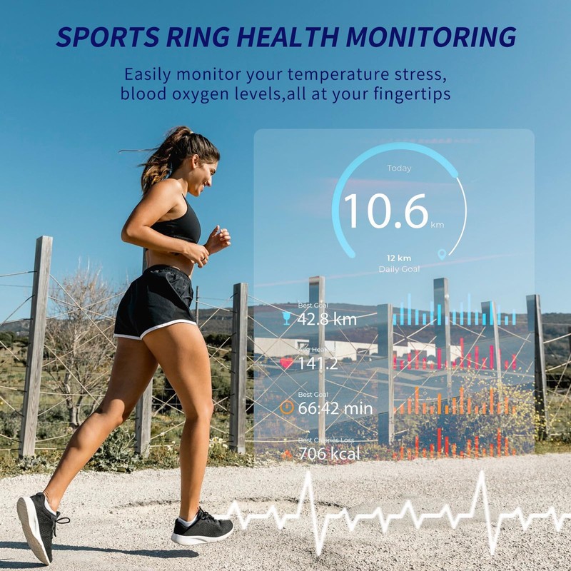 - Sports smart ring: Take your fitness routine to the next level with built-in health monitoring features. Automatically track your steps, calories burned and distance. Turn on the training mode in the application, which additionally records your training route, activity time and heart rate during exercise, so you know when to save energy or maintain effort, as well as exercise performance in real time.