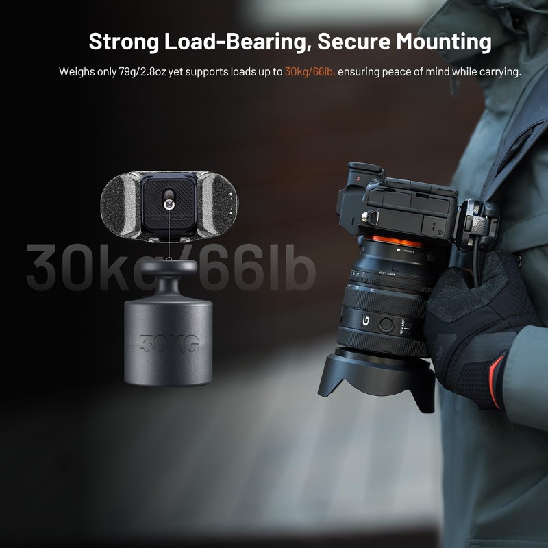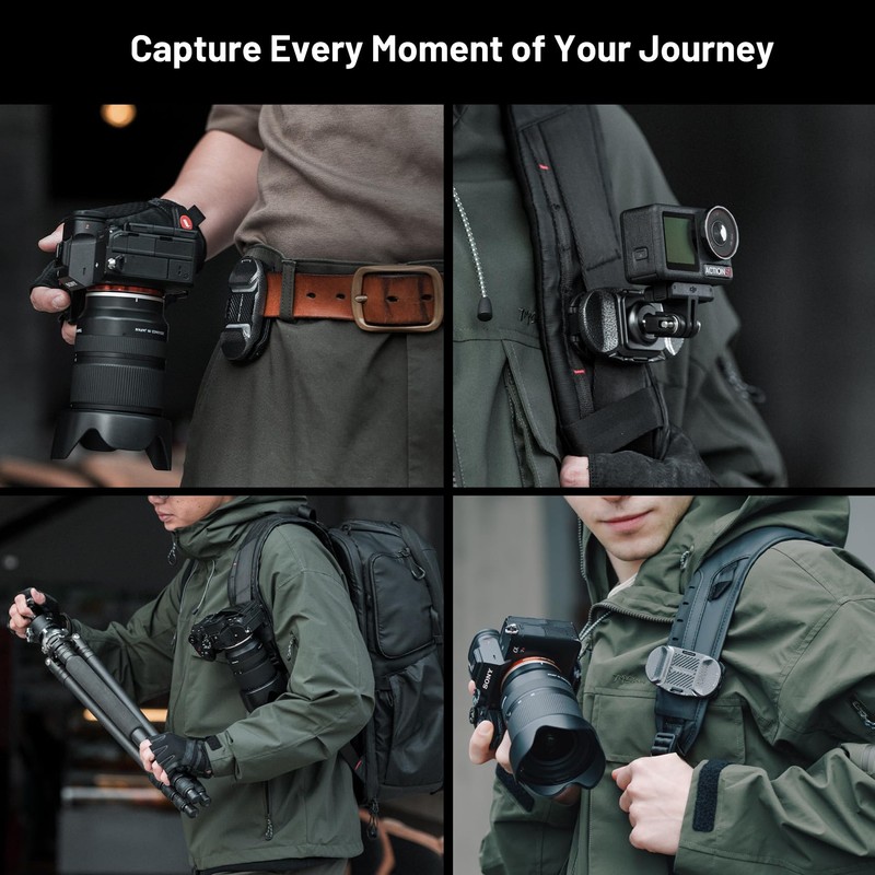 - [INSTANT ONE STEP ATTACHMENT] Improve your workflow with the patented SnapLock quick release system. Simply press and slide to securely attach your camera to any backpack strap (width ≤80 mm, thickness ≤ 20 mm). No screws or tools required - perfect for quick shots
