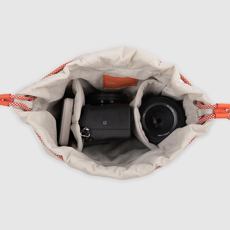 - Thick divider allows you to keep your camera and lens separated / Anti-theft for peace of mind / Splashproof nylon fabric