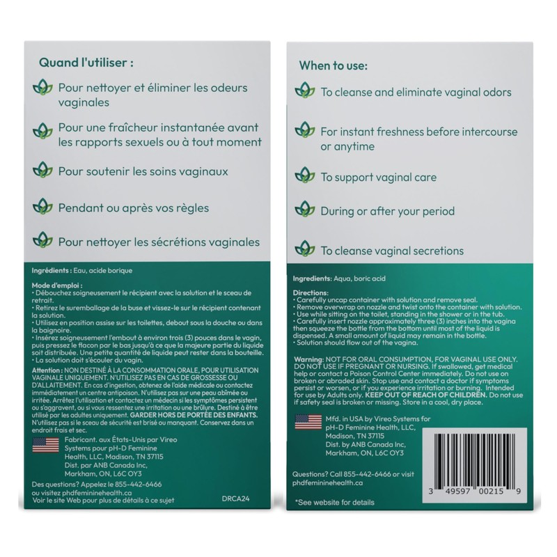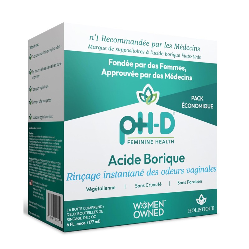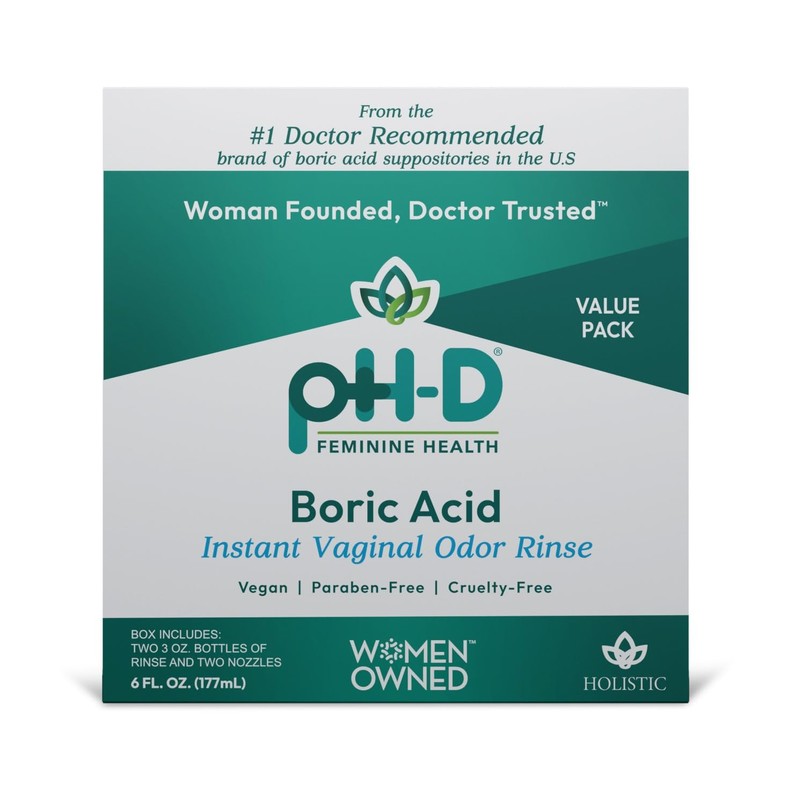 - VAGINAL ODOR: pH-D Instant Vaginal Odor Rinse is made with boric acid and purified water and can be used for feminine odor. It can be used with pH-D Boric Acid Vaginal Suppositories and pH-D Body Fresh Spray as a complete system.