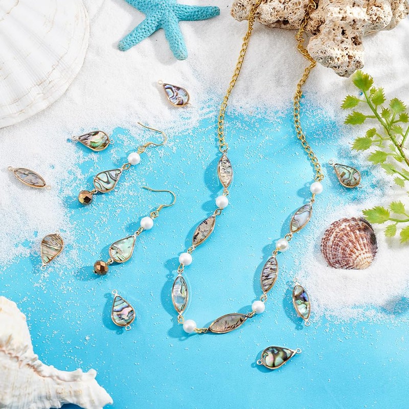 PH PandaHall 16pcs Natural Abalone Shell Connector Charms 2 Styles Shell Pendants Charms with Brass Findings Abalone Shell Connectors for Bracelet Earrings Necklace DIY Jewellery Making
