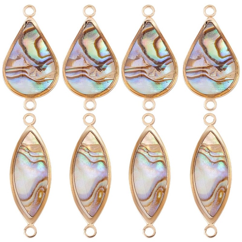 - Material: These connector charms are made of natural abalone shell and light gold plated brass , the natural abalone shell is brilliant in color and colorful in luster, which makes each piece of abalone shell pendant unique.