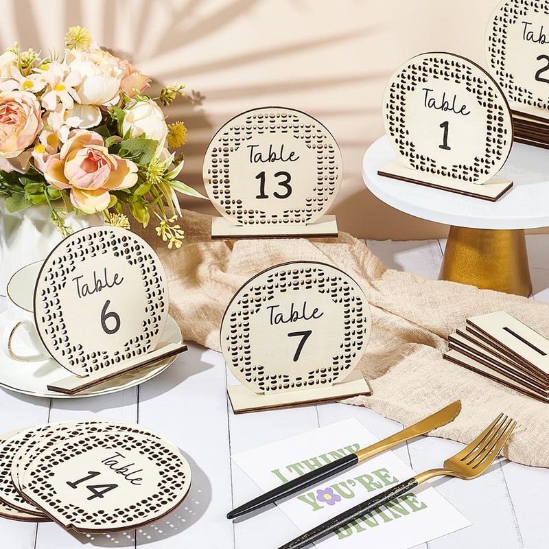 - Quality Material: These table numbers made of wood and combined with a novel rattan round shape. Thicker base ensuring sturdiness and not easy to breakage, while maintaining clear printing. Ideal for wedding, event planners, restaurant owners, or those needing to identify tables