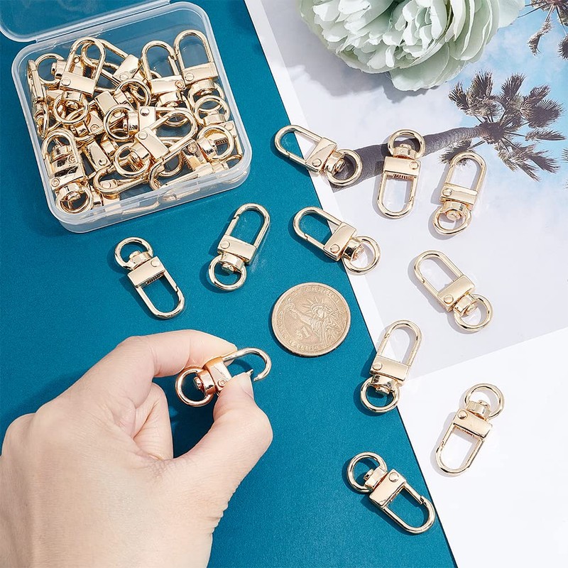 PH PandaHall 30 Pieces Golden Metal Lobster Claw Clasps Swivel Lanyards Trigger Snap Hooks Strap for Keychain Key Rings DIY Bags Jewellery Findings Crafts, 34x14x6.5mm