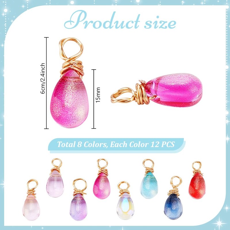 - Package Include: You will receive 8 colours of glass charms, each colour for 12 pcs, totally 96 pcs charms in a pack. Pretty glass crystal dangles have a nice assortment of colours , can meet your various DIY requirements