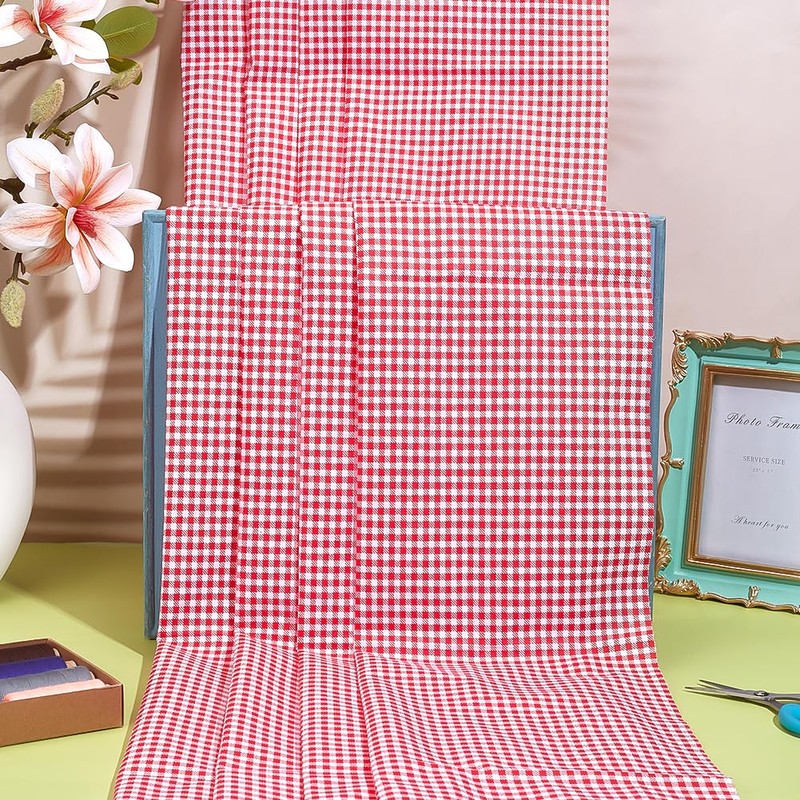 - Material: This plaid fabric is made of cotton, which gives the fabric excellent durability, not easy to break and tear and other conditions, not easy to fade, can maintain the bright red and white plaid color, whether it is making clothes or home furnishings is very suitable