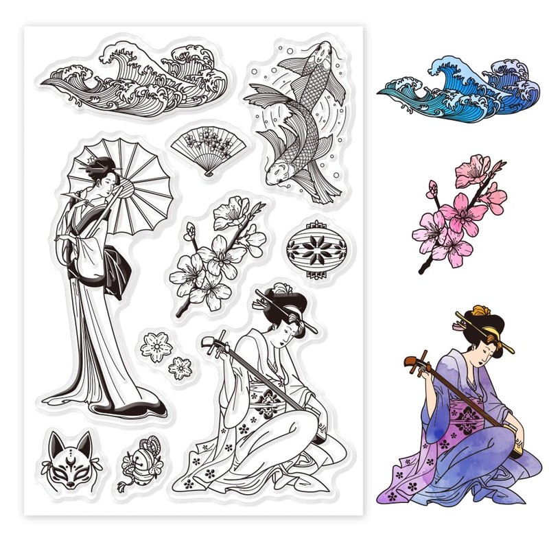 - Clear Stamp: Our stamps features oriental human, cherry blossoms, ukiyo-e pattern, this clear stamps are made of durable silicone, lightweight, not easy to break or deform, highly detailed and delicate.