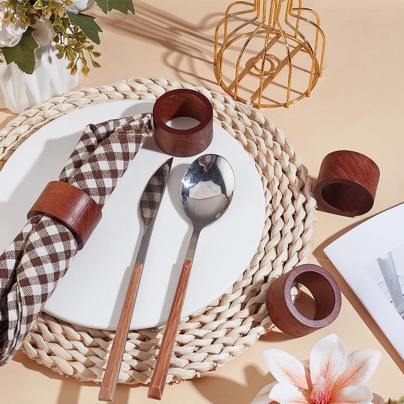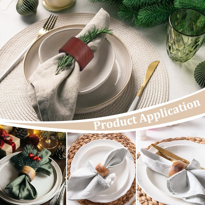 - Wood material: made of high-quality wood, these napkin rings are durable and have a smooth, natural finish. The wood material not only provides a stable hold for napkins, but also adds a warm touch to your table decoration, providing an exquisite and comfortable dining environment