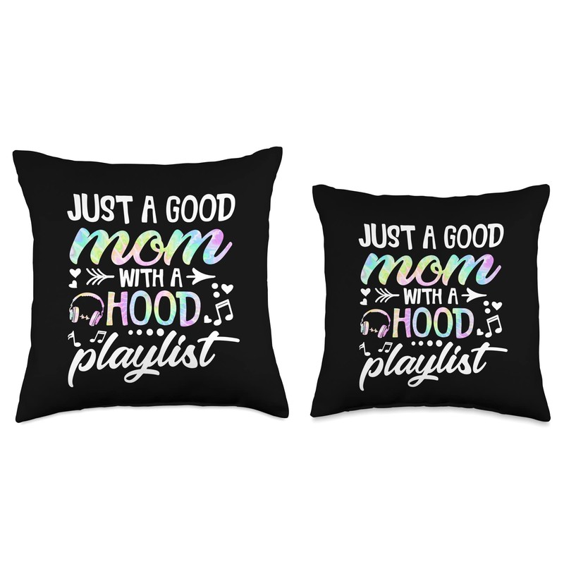 Ph Tie Dye Just a Good Mom with a Hood Playlist Throw Pillow