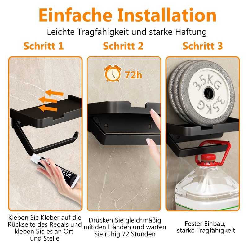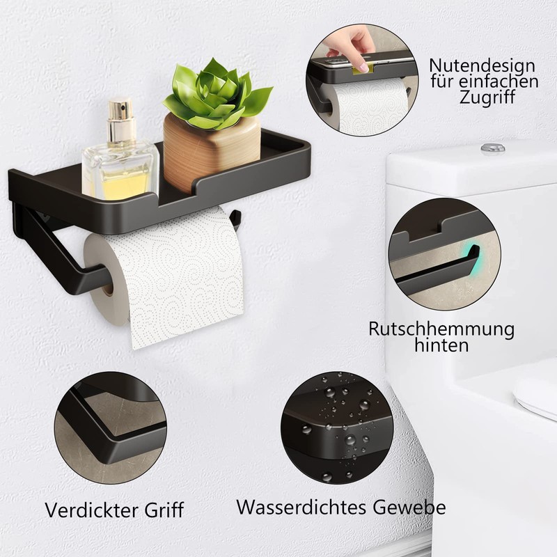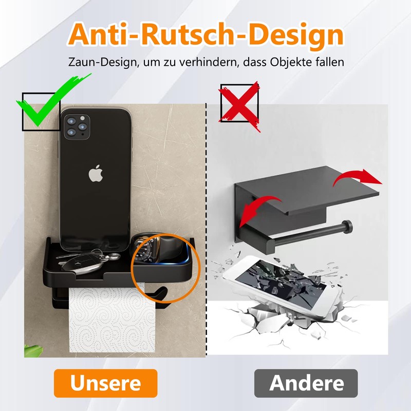 - Versatile design: combined toilet paper holder and mobile phone storage that allows the user to use toilet paper at the same time and store the mobile phone safely to check messages or view content.