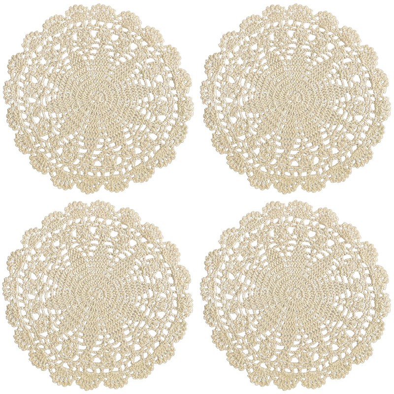 - 10 x 10 Inch cotton beige lace doilies, Pack of 4.