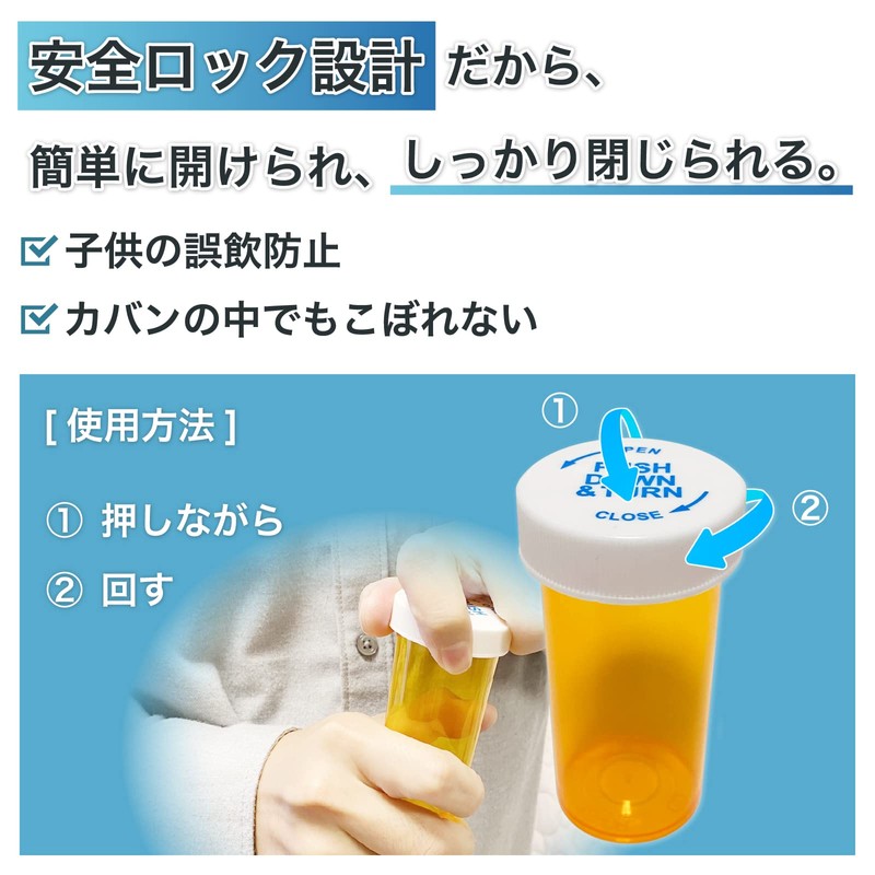 - (Simple and multi-function) The orange color of the pill case is designed to block out light for long-term storage. Transparent so you can judge how much contents are clogged with a single glance. In addition, the lid will not open without turning the lid to prevent accidental ingestion of children and pets. It is not only stylish but also functional