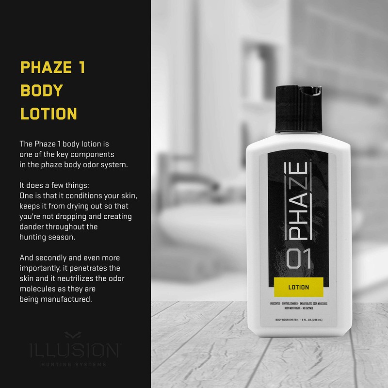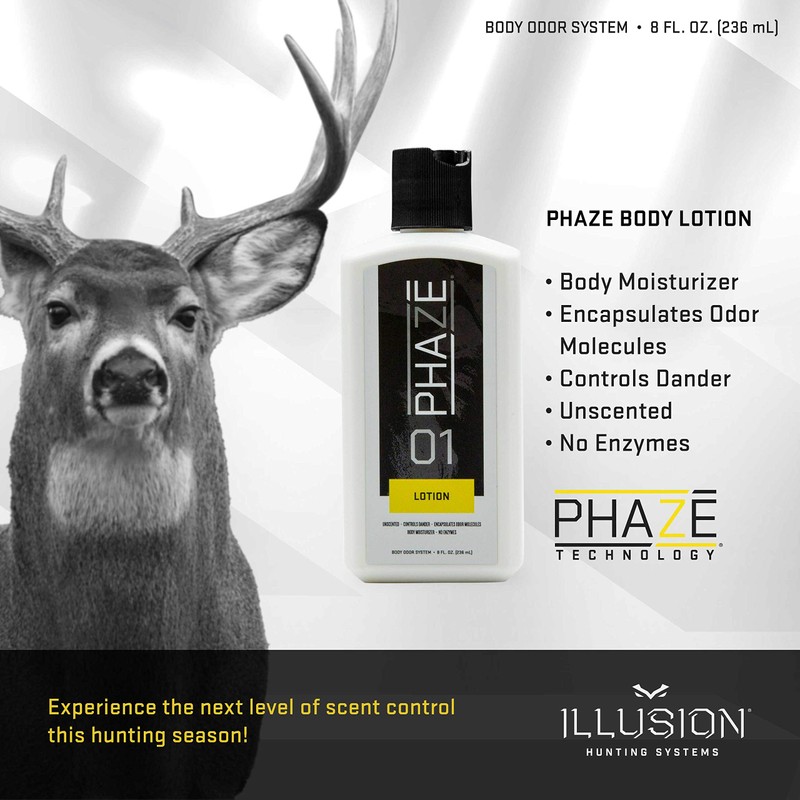 - Effective scent control: PhaZe body lotion is an odor eliminator that traps odor molecules, making you undetectable to deer; Scent free lotion works to condition your skin and control dander; Essential addition to your hunting gear