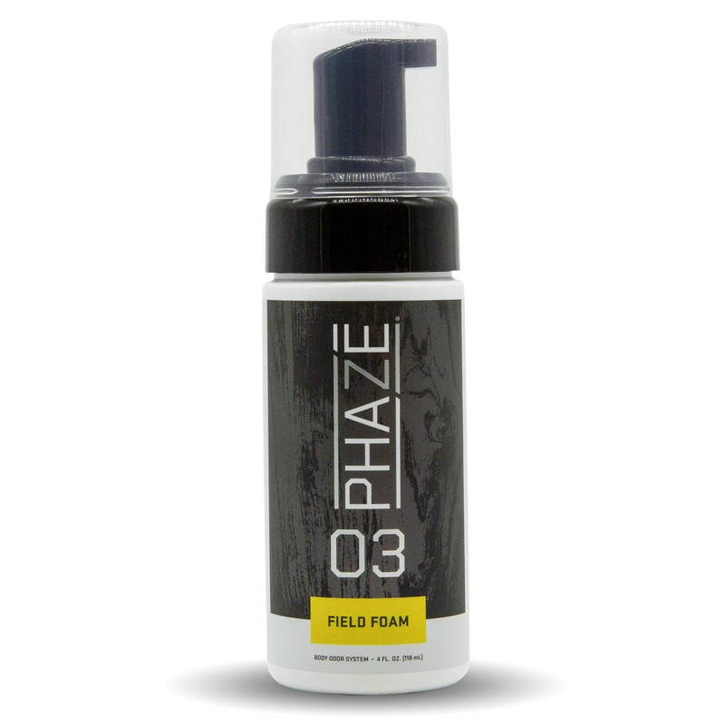 - Effective scent control: PhaZe 3 Field Foam is your last line of defense; Eliminates the sweat and odors that you acquired during travel to the stand and while setting up; it removes body odor and hydrates and conditions to keep your dander in check and prevent your skin cells from flaking off below you; Part of the Deer Hunting Scent Elimination System