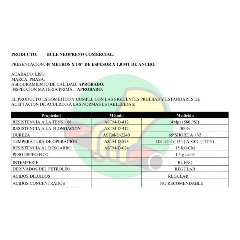 PHC Placa Hule Neopreno Comercial Sbr 33cm X 1m X 1/16 Espesor