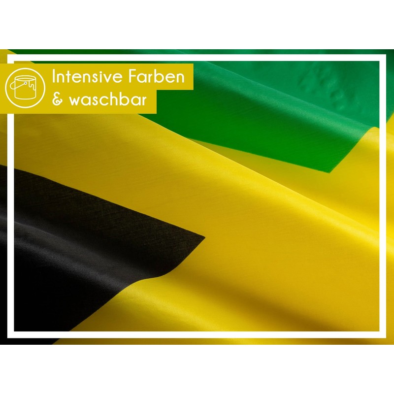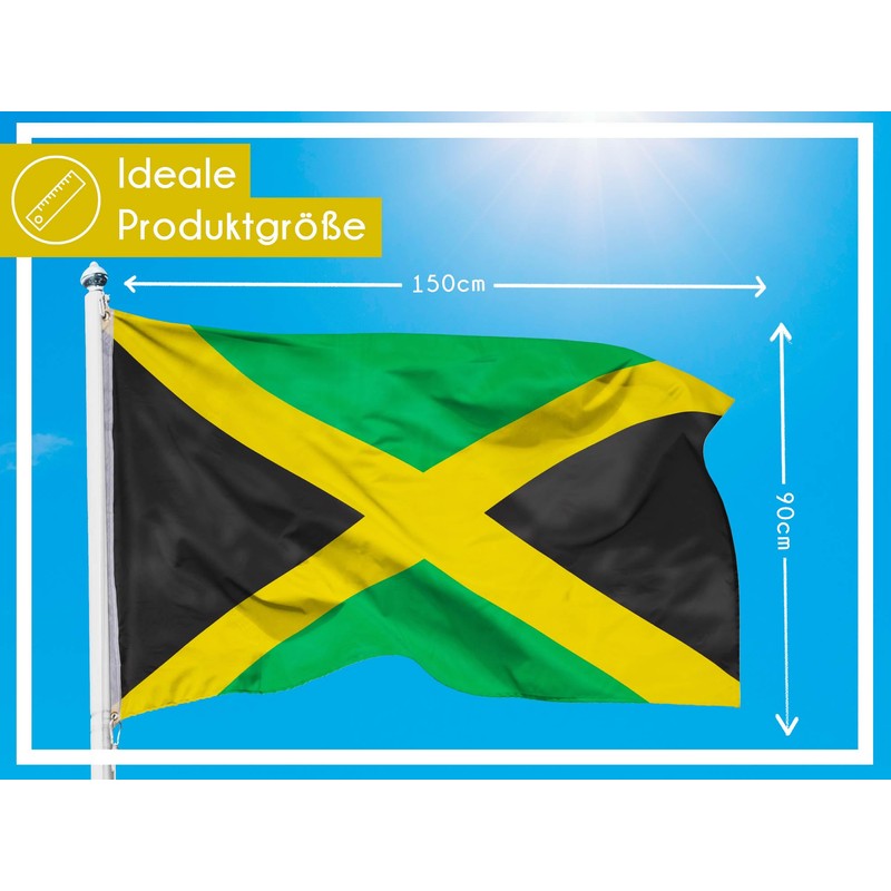 - PRODUCT INFORMATION: Jamaica flag made of 100% polyester with two integrated brass eyelets | measures: 90 x 150cm | weight including packaging approx. 82g