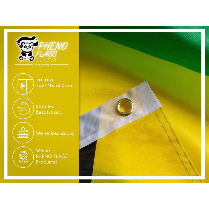 PHENO FLAGS Jamaica flag - Jamaican flag 90 x 150 cm with brass eyelets - durable flag for flagpole - 100% polyester