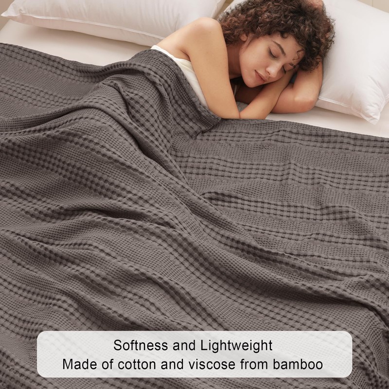 - Softness and Lightweight: This blanket made from 60% rayon derived from bamboo and 40% cotton. The moment your skin touches the blanket, you will feel an unexpected silky touch.The perfect combination of softness and lightweight ensures a luxurious feel that you will love, it will become an indispensable bedding in your life.