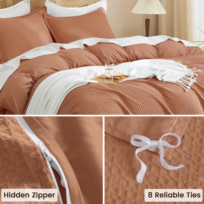 - 3-Piece Machine-Washable Duvet Set: PHF duvet cover set is very easy to care for - machine washable. Simply use a gentle cycle of cold water. You will receive a 3-piece waffle weave duvet cover set. It includes 1 duvet cover and 2 pillow shams. Please note: No comforter and pillow insert. PHF provides 30 days return and replacement service & life-time free customer service - We want our customers to be 100% happy and satisfied.