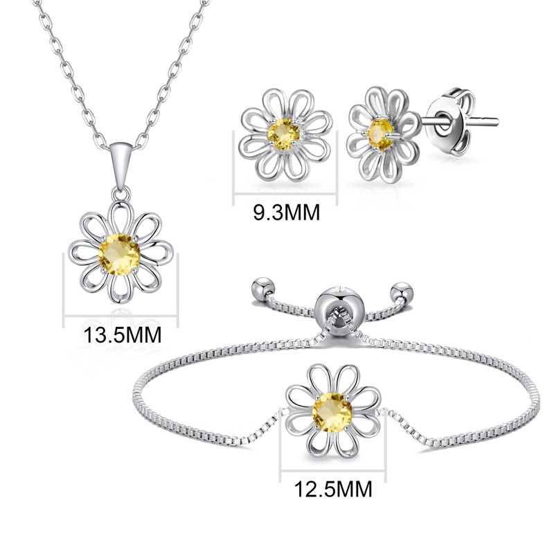 Elevate your look with this eye-catching 3pc Daisy Bracelet Set! Crafted with luxurious Zircondia Crystals, the delicate pieces are plated with Silver for a timeless shine. Hypoallergenic