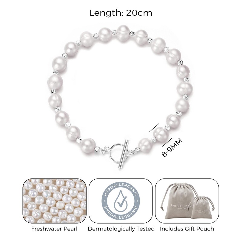 - Made with Trust. Freshwater Baroque Pearl T-Bar Bracelet by Philip Jones. Buy with confidence with our 12-month manufacturer warranty and 30-day money back guarantee if you are not 100% happy with your Bracelet.