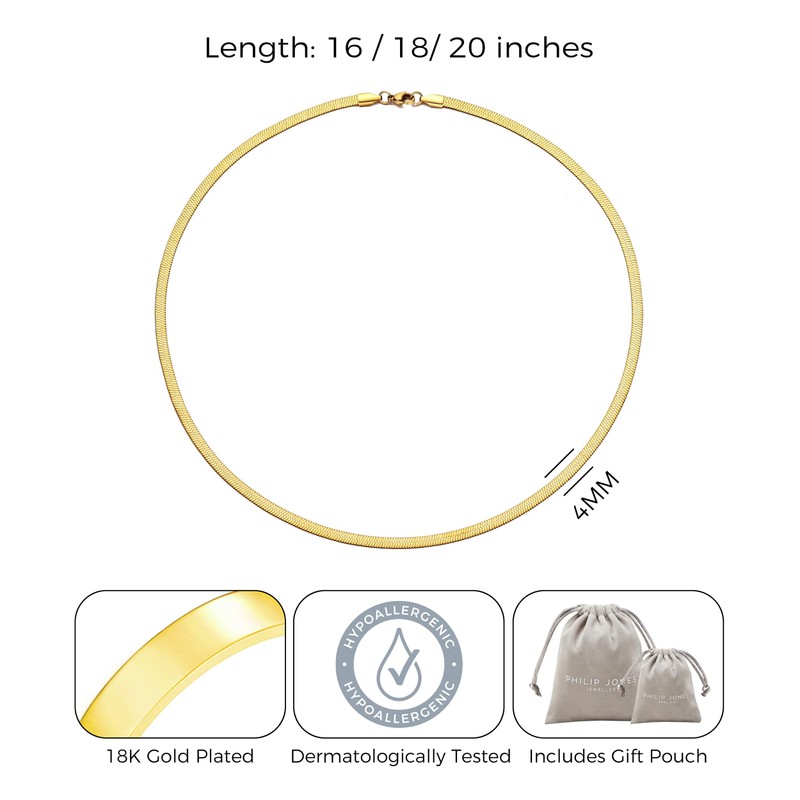- Made with Trust. Gold Plated Stainless Steel Herringbone Flat Snake Chain 16" Inch Necklace by Philip Jones. Buy with confidence with our 12-month manufacturer warranty and 30-day money back guarantee if you are not 100% happy with your Necklace.