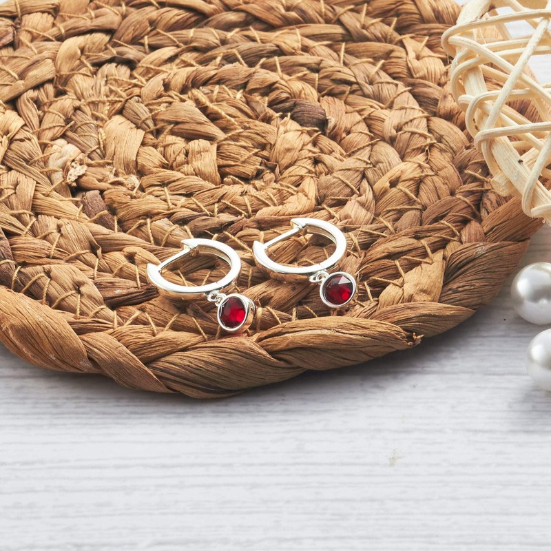 - Made with Trust. January Birthstone Hoop Earrings Created with Garnet Zircondia Crystals by Philip Jones. Buy with confidence with our 12-month manufacturer warranty and 30-day money back guarantee if you are not 100% happy with your Earrings.