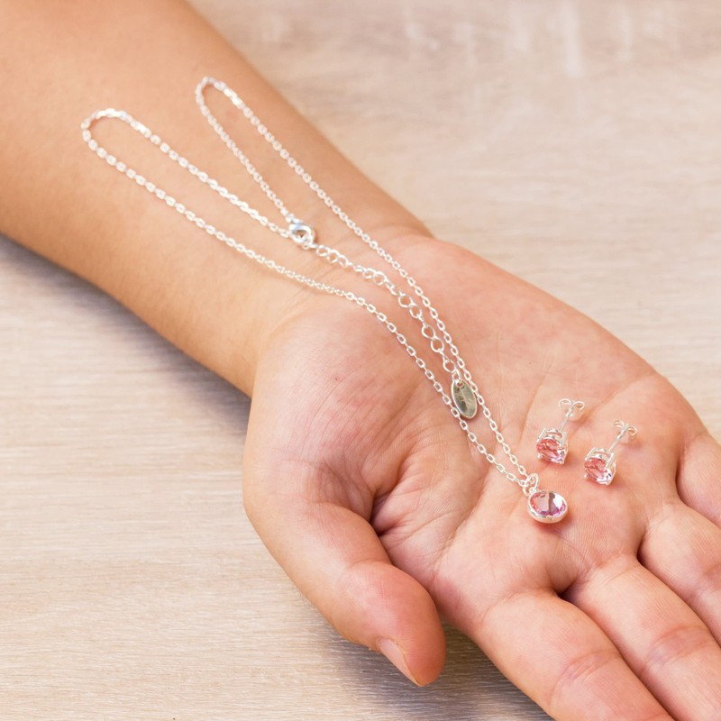 • Made with Trust. October (Tourmaline) Birthstone Necklace & Earrings Set Created with Zircondia Crystals by Philip Jones. Buy with confidence with our 12-month manufacturer warranty and 30-day money back guarantee if you are not 100% happy with your Set.