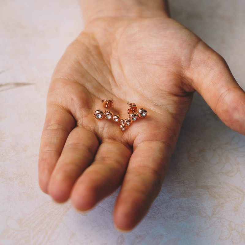 - Made with Trust. Rose Gold Plated Four Stone Climber Earrings Created With Zircondia Crystals by Philip Jones. Buy with confidence with our 12-month manufacturer warranty and 30-day money back guarantee if you are not 100% happy with your Earrings.