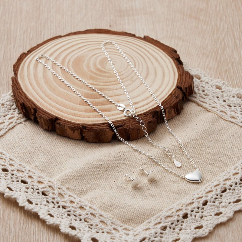 Be moved and captivated with this exquisite Sterling Silver Friendship Quote Heart Set from Philip Jones! With a 925 metal stamp, this set weighs 3.5g and features a Stud Earring with 6mm (H) x 6mm (W) dimensions and a 0.7g weight. The Pendant Necklace features a 9.7mm (H) x 9.7mm (W) dimensions and a 43cm + 5cm extender chain with a Lobster Claw closure and weighs 2.8g. Gift yourself a meaningful, timeless piece that will be treasured forever!