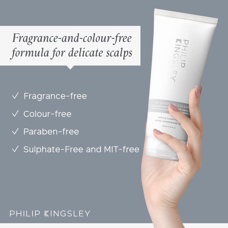 - NO-SCENT, NO-COLOUR – Philip Kingsley No Scent No Colour Shampoo and Conditioner Set is ideal for sensitive, delicate, or easily irritated scalps. Fragrance-free, colour-free and paraben-free for extra gentle cleansing.