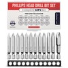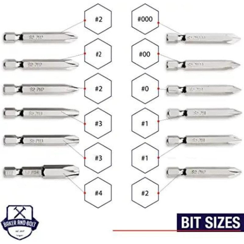 - "Screw it, we have that size too" - Our phillips bit set includes sizes: PH #000, PH #00, PH #0, (2x) PH #1, (4x) PH #2. Not a single screw will go undrilled.