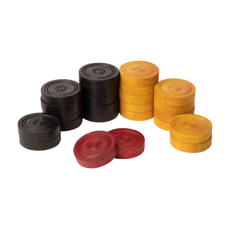 - Carromstein: wood, dimensions 32 x 8 mm, weight 6 g.