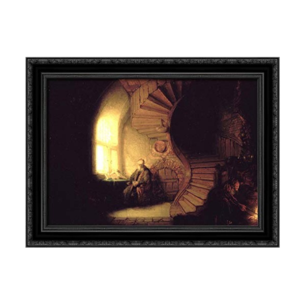 - Philosopher In Meditation 24x18 Black Ornate Wood Framed Canvas Art by Rembrandt
