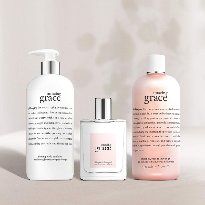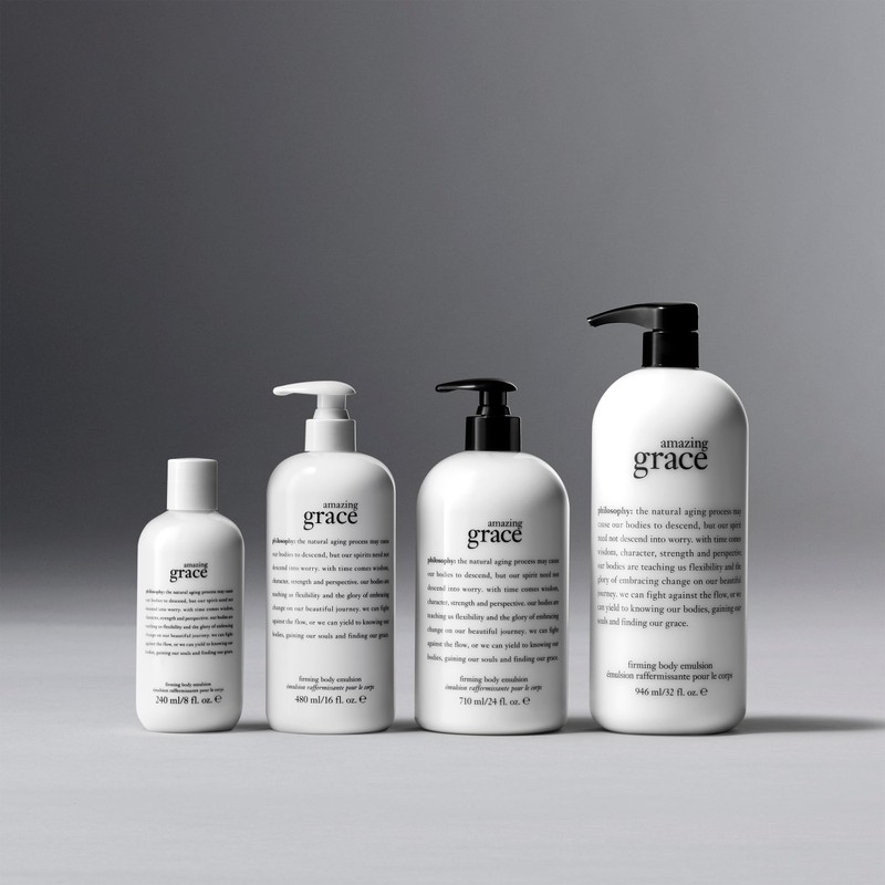 Infused with the amazingly clean, beautifully feminine scent of philosophy's bestselling amazing grace fragrance, this firming body emulsion is an award- winning moisturizer for dry skin. includes an antioxidant and firming ingredient to help skin feel more toned. featuring notes of bergamot, muguet blossoms, and musk. enriched with shea butter and natural oils, like olive and macadamia.