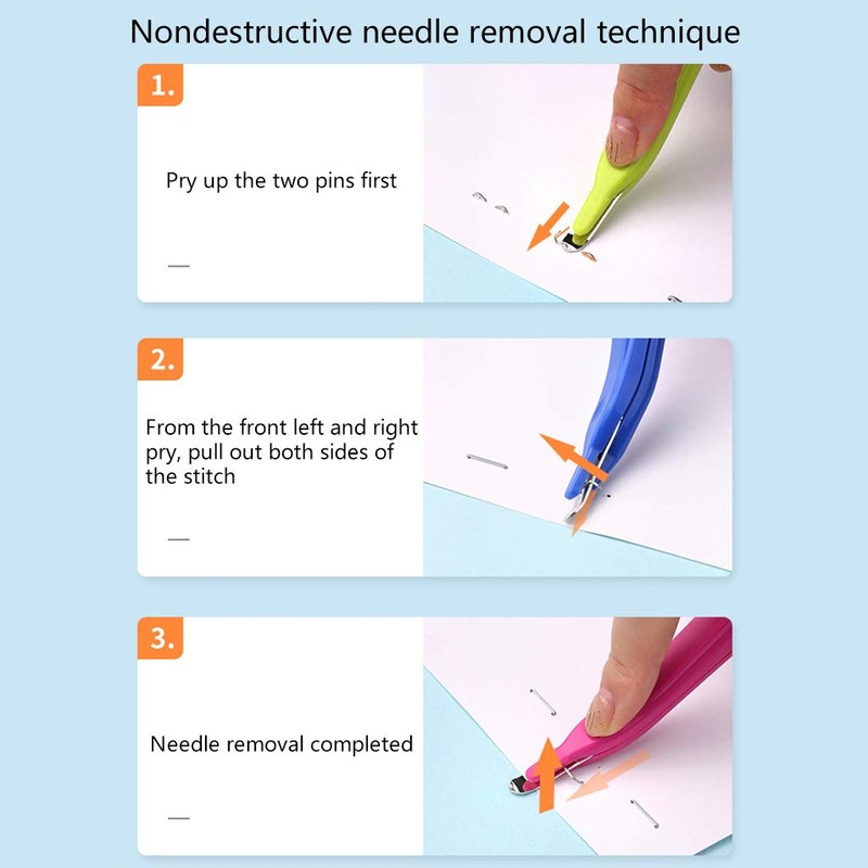 - The staples can be easily removed by wiping to the left and right. The method of use is simple and does not tear the paper.