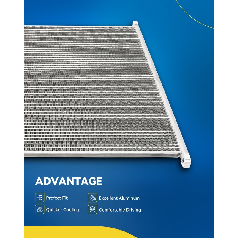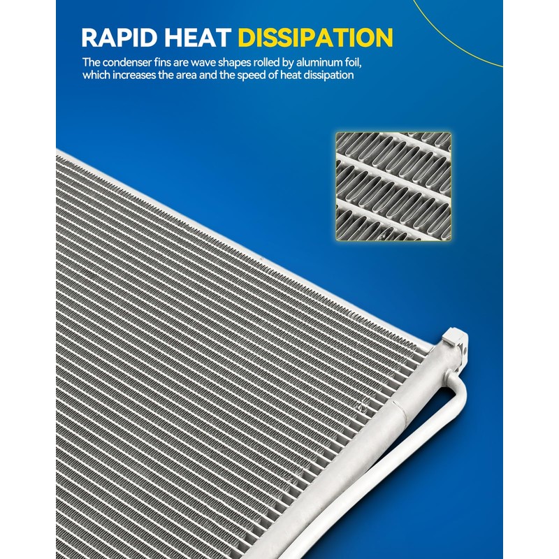 - EFFCIENT COOLING CAPACITY: Using light and thin aluminum tubes to maximize heat transfer without compromising strength. The air conditioner condenser can cool the air inside the car quickly, even in hot environments. This improves your comfort in the car, especially in summer and hot weather
