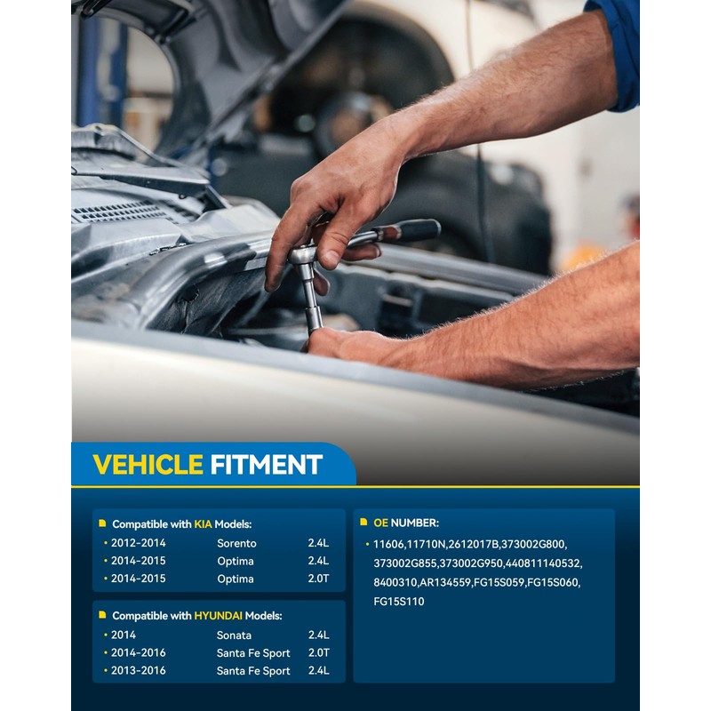 - [Vehicle Fitment]: Alternator compatible with Optima 2014-2015 2.0T 2.4L, Santa Fe Sport 2014-2016 2.0L 2013-2016 2.4L, Sorento 2012-2014 2.4L, Sonata 2014 2.4L.