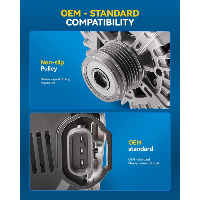 - [OEM Quality]: Automotive replacement alternator undergo rigorous quality testing, including tests on electrical performance, speed load, conversion efficiency, temperature, vibration, insulation performance, noise, and appearance dimensions, meeting or exceeding OEM standards.
