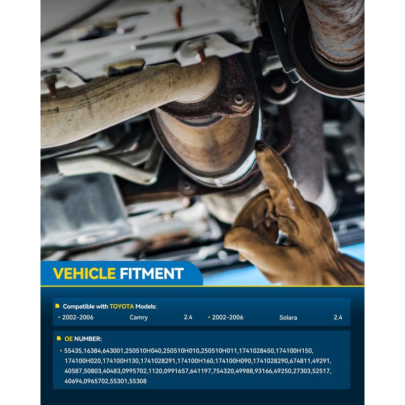 - Vehicle Fitment: PHILTOP Front and Rear Catalytic Converter Compatible with Toyota 2002-2006 Camry 2.4L, 2002-2006 Solara 2.4L
