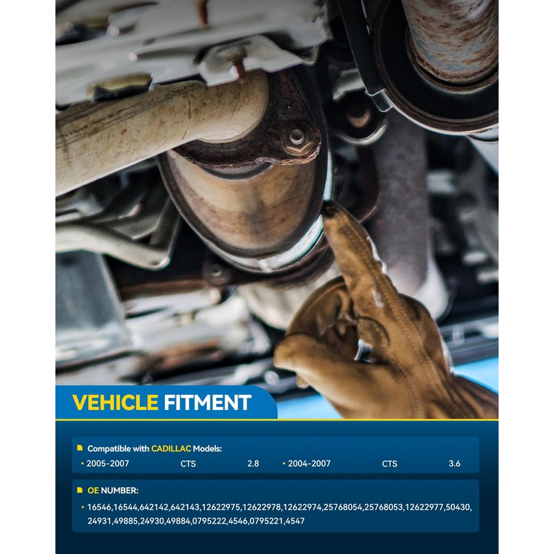 • [COMPATIBILITY] --- Catalytic converters fit for 2004-2007 CTS 2.8/ 3.6L. Reference Number: 16546, 642143, 50429, 16544, 642142, 50430.These free-flow catalytic converters have bolt-on connections and flange to flange design for effortless installation.