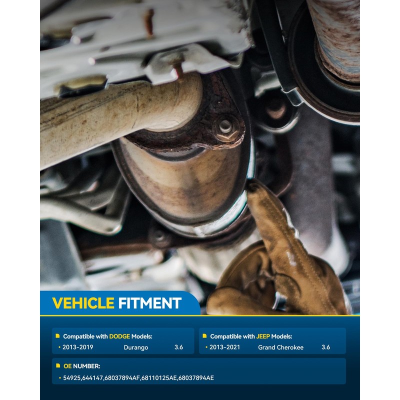 - [COMPATIBILITY] --- Catalytic converters compatible with 2013-2021 Grand Cherokee 3.6L, 2013-2019 Durango 3.6L.Reference Number: 54925, 644147, 20468.These free-flow catalytic converters have bolt-on connections and flange to flange design for effortless installation.